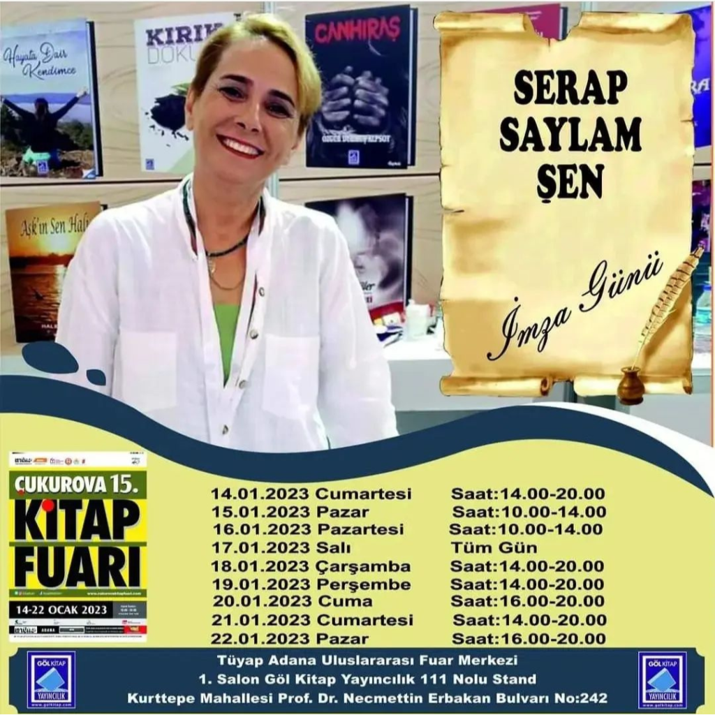 Serap Saylam Şen’in imzasıyla Anlatsana şiir kitabı 14-22 ocak 2023 tarihlerinde Adana Tüyap fuar merkezinde…