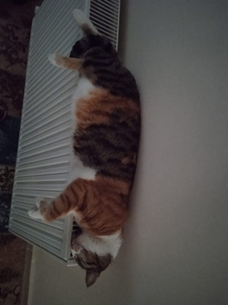 Kışında kalorifer peteği üzerinde böyle mayışır.