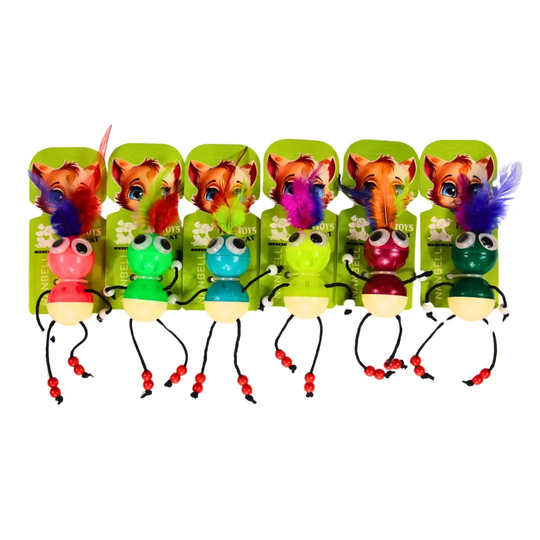 Nanbell Tüylü Zilli Böcek Kedi Oyuncağı – Hareketli ve Renkli Interaktif Oyuncak AO66